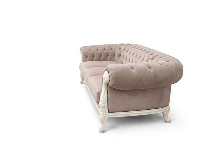 Canapeaua Victoria nu este doar un obiect de mobilier, ci o experiență senzorială completă. Inspirată de stilul clasic european, aceasta îmbină rigoarea execuției în lemn masiv cu finețea tapițeriei capitonate manual.